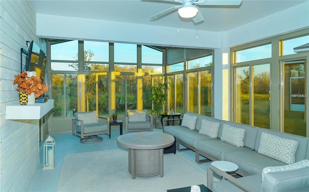 The efficiently designed open concept makes it easy to entertain in the combined dining/living space. The glass sliders open to the spectacular Florida sunroom. The spa-like master suite also has entry to sunroom. A bonus flex-room at front of home can be used as an office/study. Two additional bedrooms easily fit king beds and are set away from main living to offer privacy for guests.