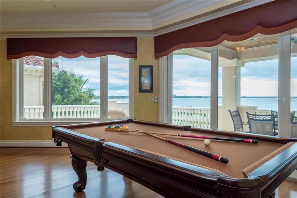 Enjoy panoramic water views from every window, abundant natural light, and comfortable breezes. With over 14,000 total covered square feet, this home is exquisitely appointed inside and out. The tall glass entryway boasts breathtaking see-through views to sparkling waters and opens to an impressive two-story gathering area with floor-to-ceiling glass and a fireplace.