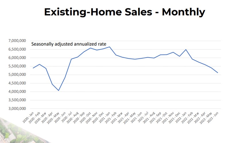 We have seen the brakes heavily applied to the number of real estate transactions in the United States. The chart below, from the National Association of Realtors, shows just how much has changed in recent months.