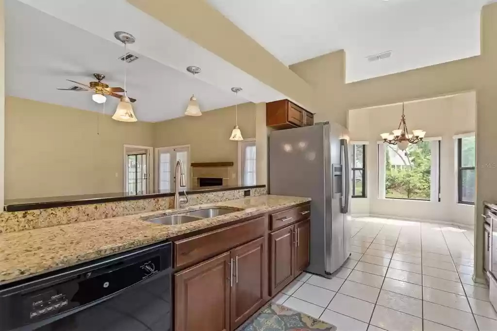 The large family room features a wood-burning fireplace, tile floors and two sets of French doors leading to the screened-in porch and backyard. New roof and skylights installed in 2021 and much of the interior has been freshly painted. This home is handicap accessible with wheelchair ramp from the garage entrance, and the primary suite offers an en-suite bath with wheelchair accessible, oversized shower.