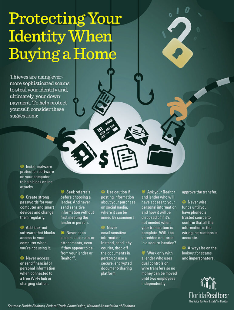 It is important to protection your personal information when going through a real estate transaction. The infographic below from Florida Realtors provides a framework for keeping your information as safe as you can.