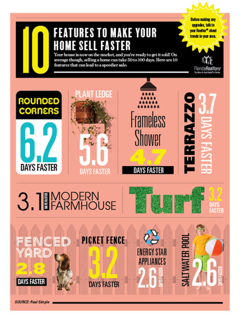 Here are some tips from Real Simple and Florida Realtors on how to sell your home more quickly. With inventories higher than we have seen in a while, putting your best foot forward is important when trying to sell your home.